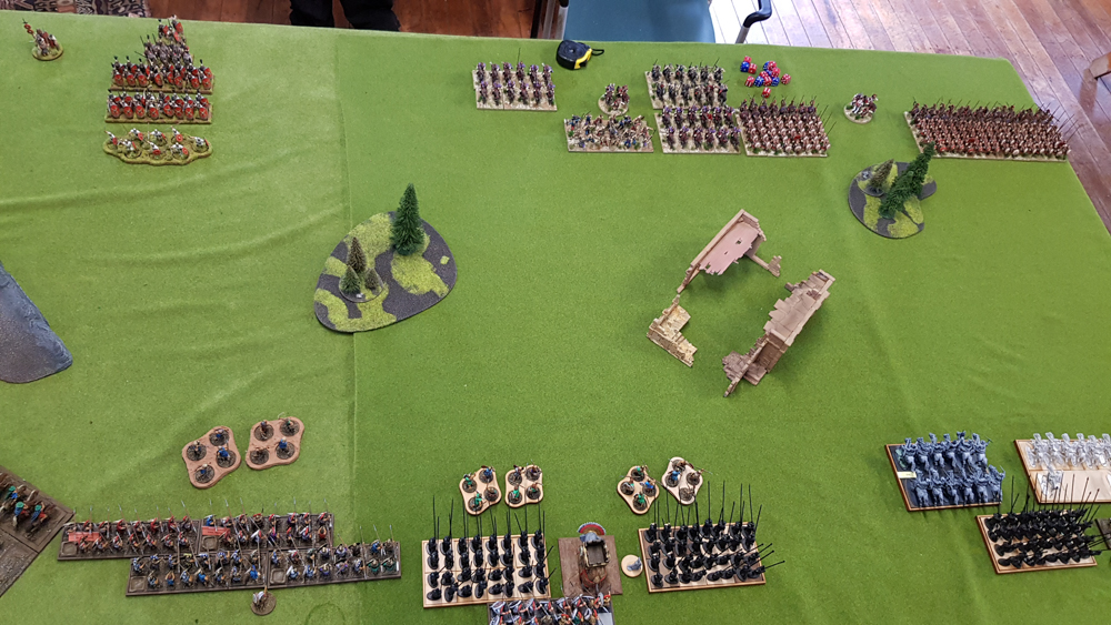 Yesterday was the monthly South Auckland gaming club day. With Hail Cesar the flavor of the month. With only nine of us being there, I ended up using my Greek and Pyrrhic armies together to face off two opposing 300 point armies.